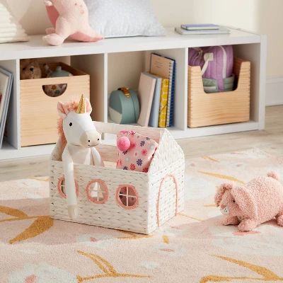 Help your kid keep their books organized for easy accessibility using this House Book Storage from Pillowfort™. Made of paper, this book storage is designed in the shape of a house for a fun and whimsical look. Boasting a weave pattern, this open-top storage basket is great for stashing not only books but also stuffed animals, craft supplies and much more.