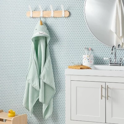 Add extra fun to your kid’s bath and shower time with the Hooded Narwhal Bath Towel from Pillowfort™. Featuring a narwhal-inspired design, the hood has a sparkly gold-colored horn and a smiling cartoon narwhal face. This 100% cotton terry fabric towel is perfect for drying off your kid from head to toe, and the built-in hanging loop makes it easy to store in between uses.